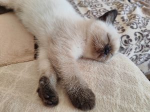 Baghira kuschelt wie eine Große und ist eine richtige Schmusekatze…Bauchkrabbeln findet sie super und legt sich schnurrend mitten auf einen.