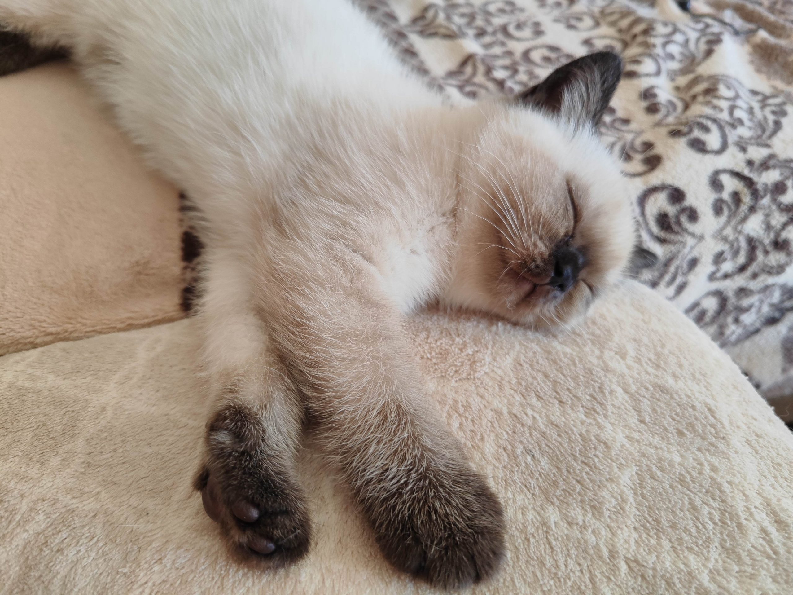 Kuscheln könnte er rund um die Uhr und schläft gern seelig auf meinem Schoß.